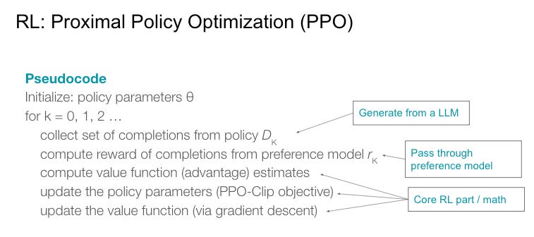 For many RLHF use cases today, we can assume the model we're training is already instruction-tuned for chat or whatever behavior the model is looking to achieve. In the "Reward Model & Other Infrastructure" we have multiple pieces: