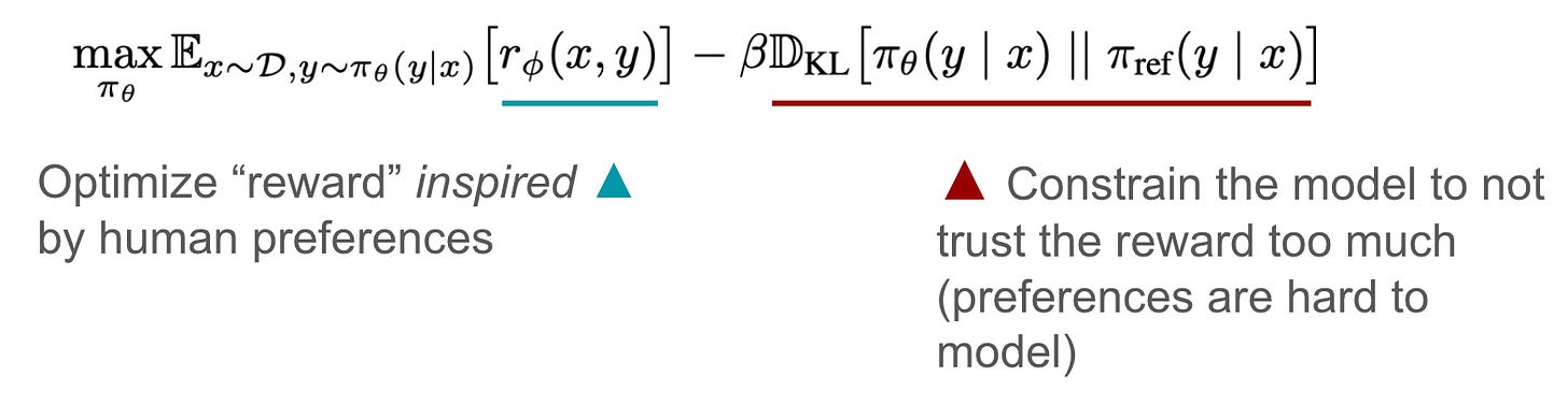 One way to think about it is that the reward model tells the model how big of a change this new preference should make in the behavior in absolute terms, while the preference model calculates how big of a difference there is between the two outputs in relative terms. A lot of this derives from John Schulman’s work on PPO: