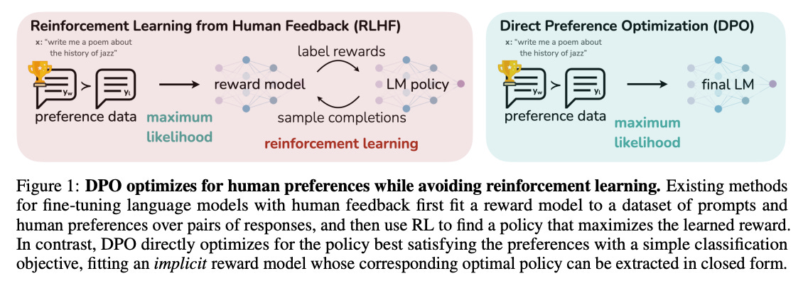 Direct Preference Optimization (DPO): We covered DPO in our NeurIPS Best Papers recap, and Nathan has a whole blog post on this; DPO isn’t technically RLHF as it doesn’t have the RL part, but it’s the “GPU Poor” version of it. Mistral-Instruct was a DPO model, as do Intel’s Neural Chat and StableLM Zephyr. Expect to see a lot more variants in 2024 given how “easy” this was.