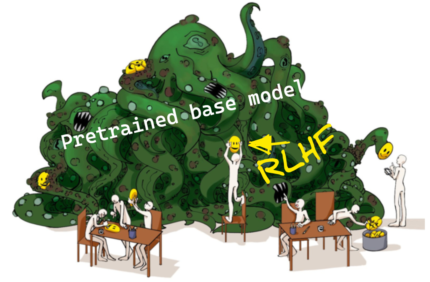 Today we visit the shoggoth mask factory: how do transformer models go from trawling a deeply learned latent space for next-token prediction to a helpful, honest, harmless chat assistant?