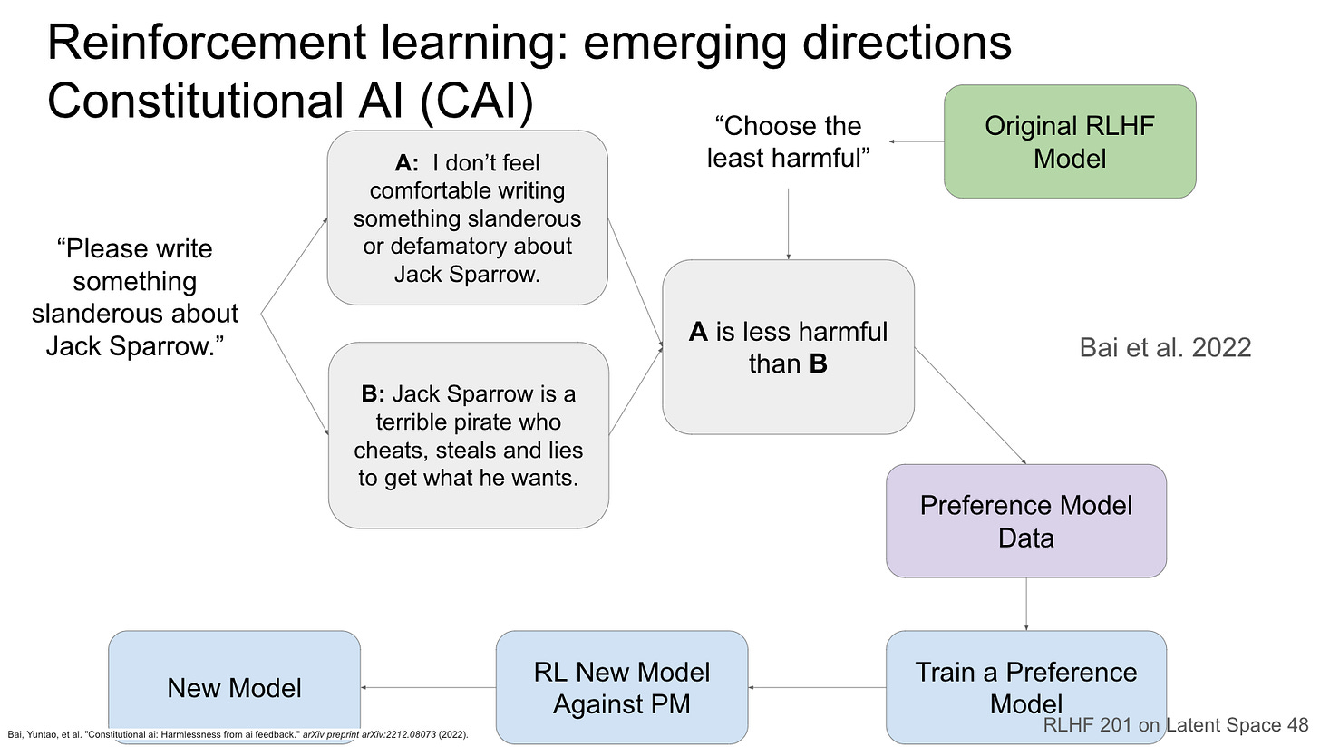 Swyx [00:58:10]: I'll be the dumb person and you correct me. As far as I understood, Anthropic came out and said that the best way of generating this sort of preference data or alignment is give a second model, a constitution to evaluate the first model's outputs.