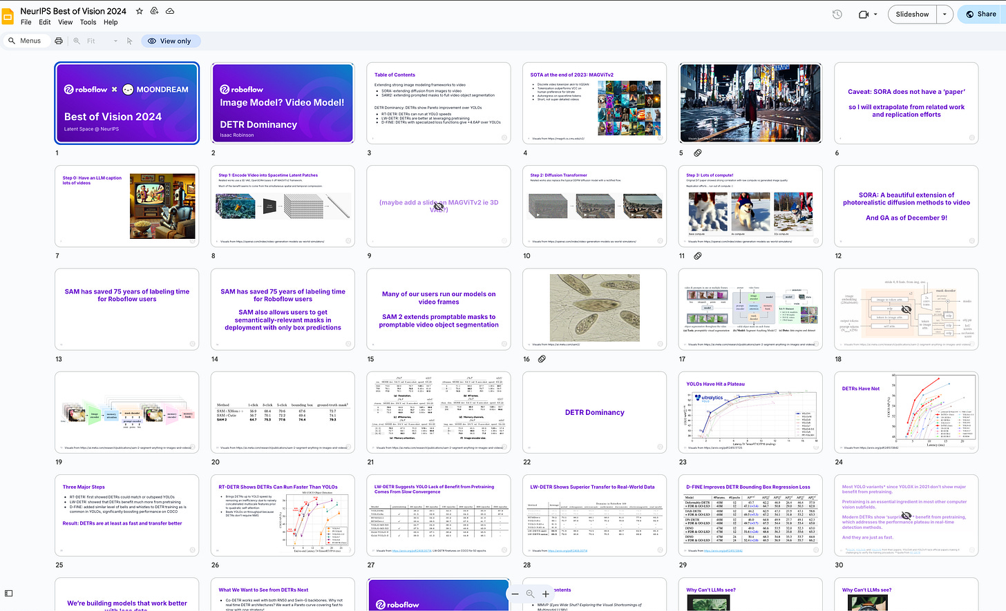 [00:01:48] Isaac Robinson: Hi, we're Isaac and Peter from Roboflow, and we're going to talk about the best papers of 2024 in computer vision. So, for us, we defined best as what made [00:02:00] the biggest shifts in the space. And to determine that, we looked at what are some major trends that happened and what papers most contributed to those trends.