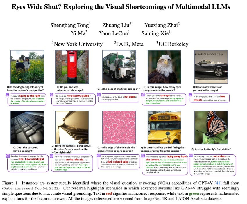 [00:21:08] Peter Robicheaux: So the question is sort of why? And for you anthropic heads out there, cloud fails too. So the, the, my first pick for best paper of 2024 Envision is this MMVP paper, which tries to investigate the Why do LLMs not have the ability to see fine grained details? And so, for instance, it comes up with a lot of images like this, where you ask it a question that seems very visually apparent to us, like, which way is the school bus facing?