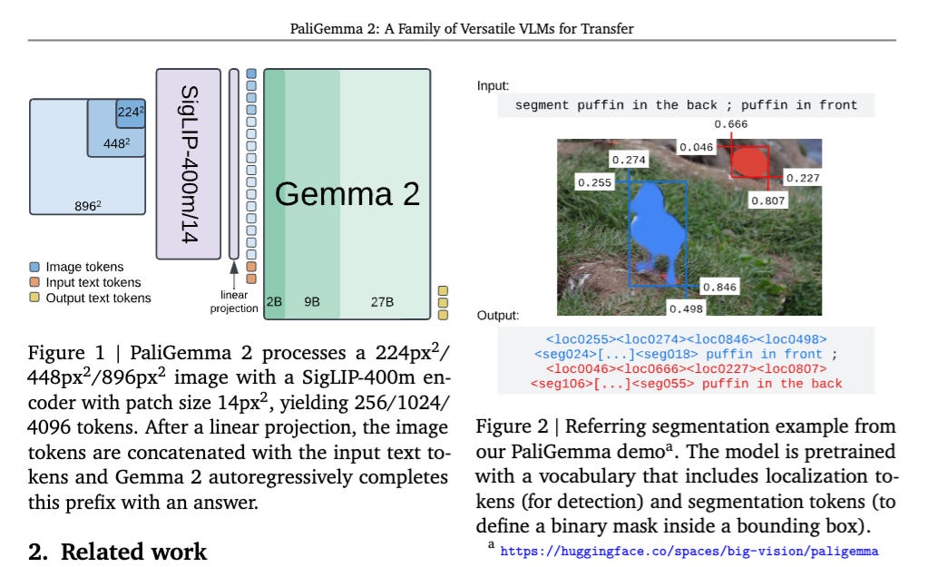[00:29:59] Peter Robicheaux: So, anyway, so [00:30:00] PolyGemma 2, so PolyGemma is essentially doing the same thing, but instead of doing an encoder decoder, it just dumps everything into a decoder only transformer model. But it also introduced the concept of location tokens to point to objects in pixel space. PolyGemma 2, so PolyGemma uses Gemma as the language encoder, and it uses Gemma2B.