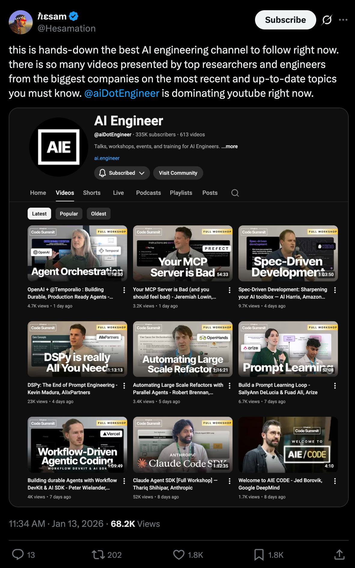 More shows, more hosts: The 1-2 hour interview podcast format is cool but Alessio and I can only do so much. We’ll be doing more education (the booming area of AI for Science is our next focus, with new hosts), but also entertainment (AI can be fun! and AI people are REALLY FUN). Most of our new investments will go into more YouTube and video-native formats.