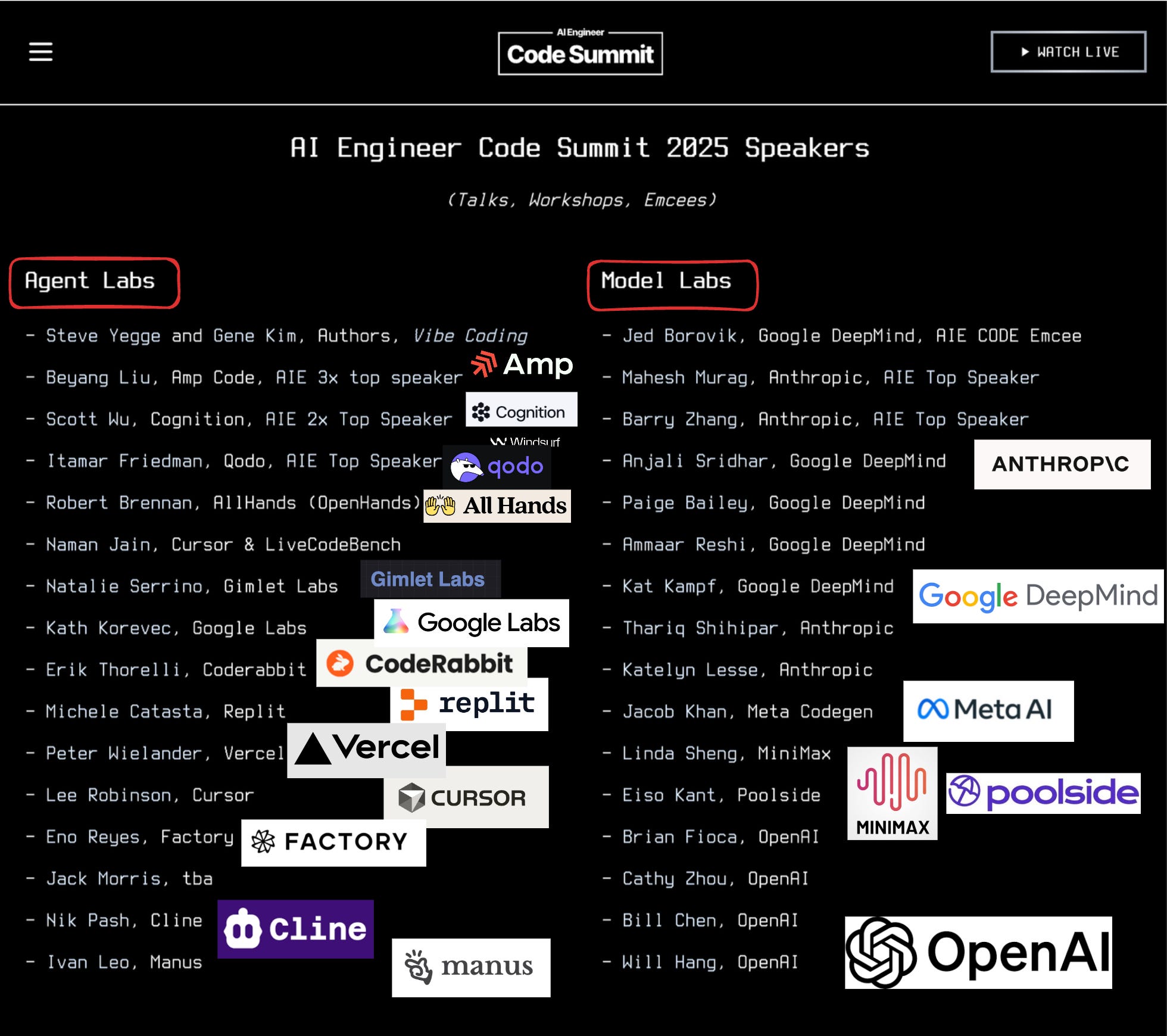 We are on the record as fans of Steph Palazzolo, but we politely disagree with her coining of the term “Neolab”, adopted and boosted by returning guest Deedy Das. For AI Engineer Code Summit we used, for the first time, the term “Agent Lab”, instead.