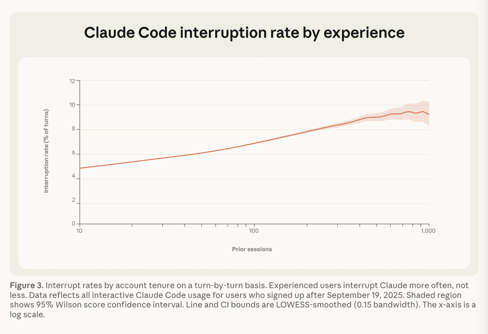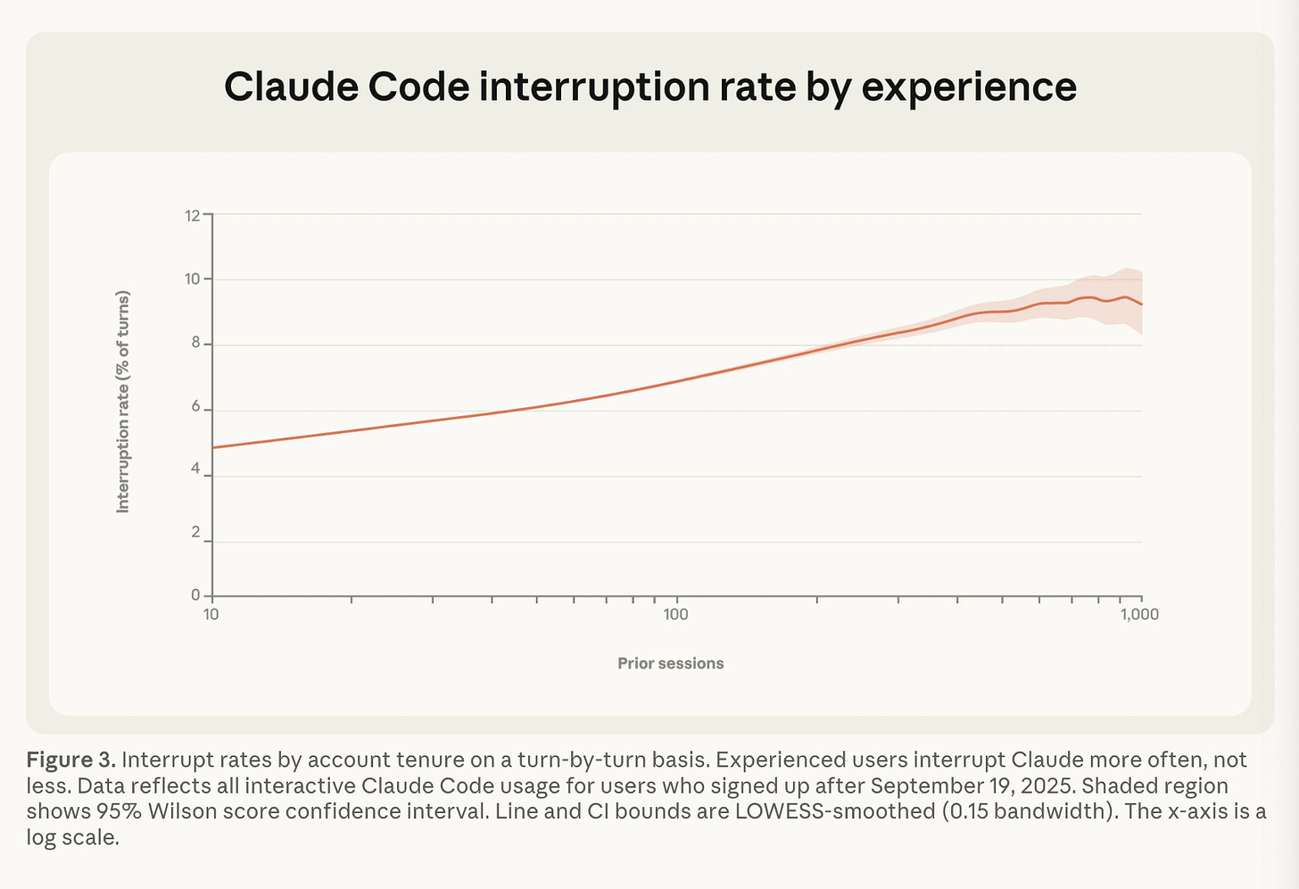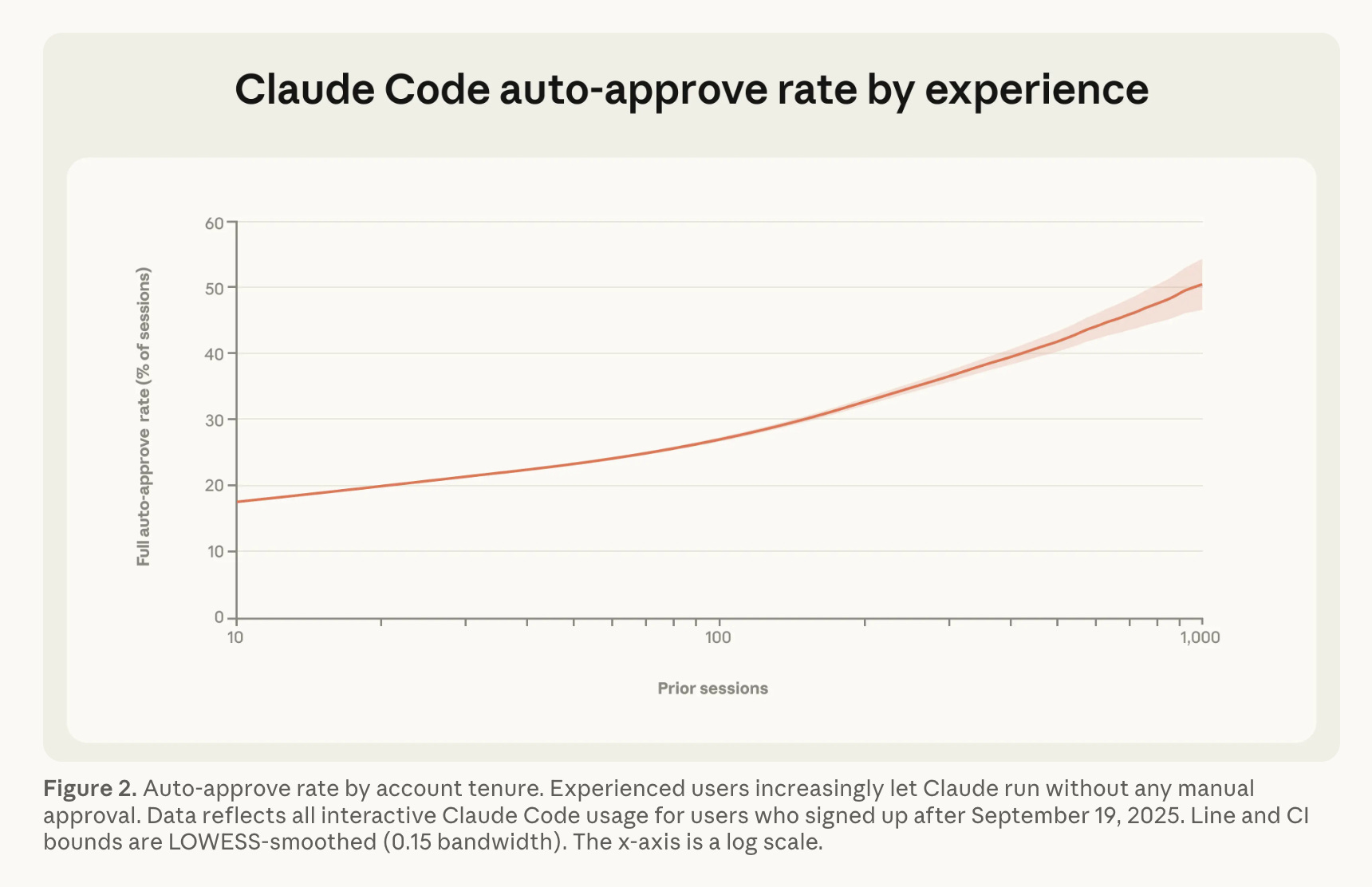 Enough said. Because Anthropic has full access to Claude Code telemetry, there are other autonomy measures nobody else has. For example… new users start off with 20% auto-approve, and increase to >50% over time with experience