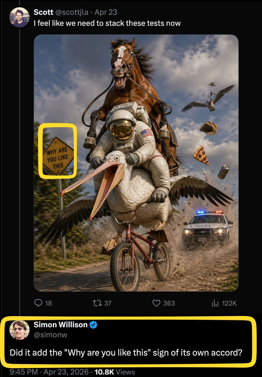 By the way, horse-riding astronauts used to be hard in imagegen, then it was astronaut-riding-horses, and now, well…