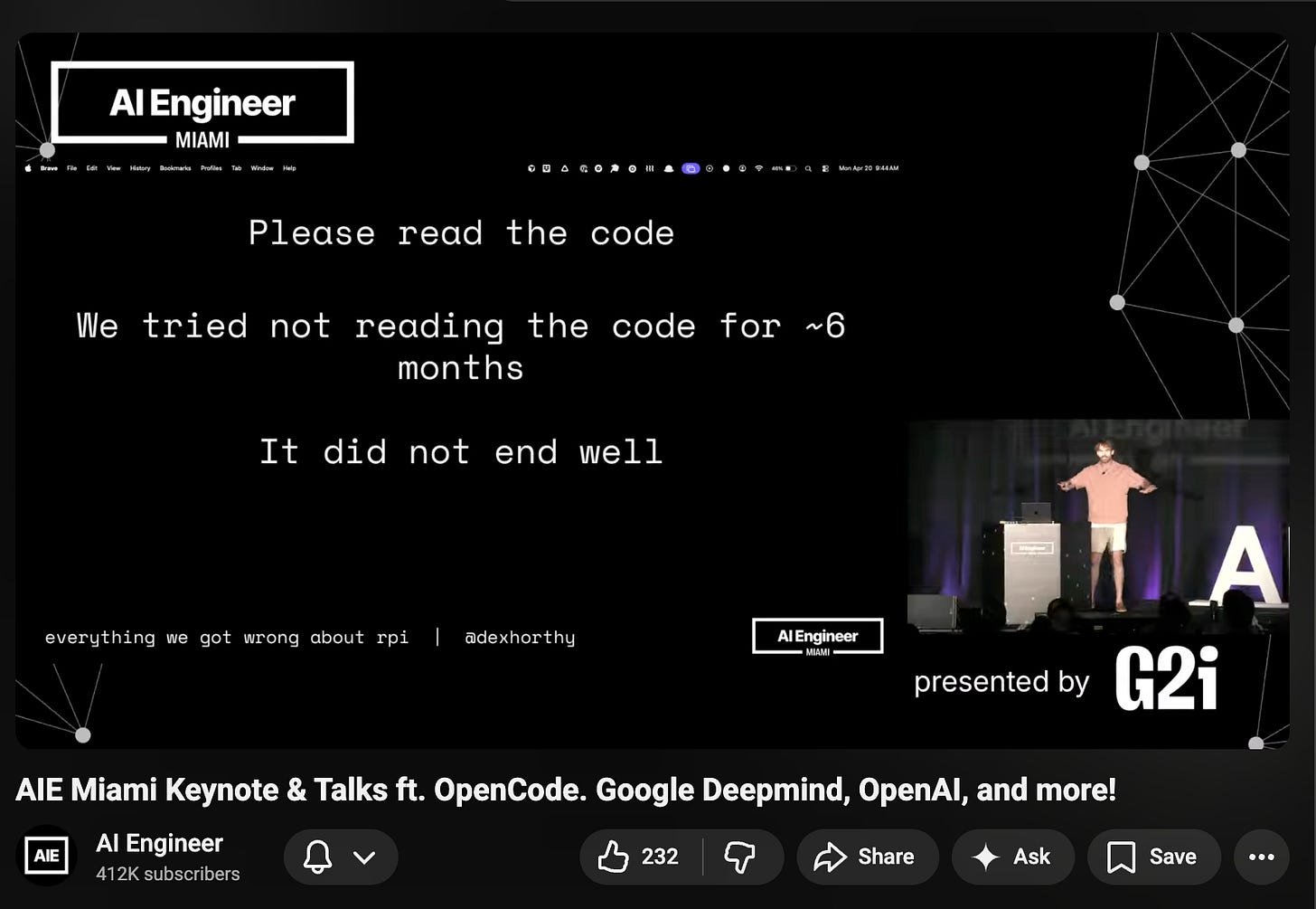 Dex Horthy, coiner of Context Engineering and “the Dumb Zone”, publicly retracted his extremely vibe-coding-pilled call 6 months ago and encouraged people to please read the code, citing Alex Volkov’s Z/L continuum from AIE Europe: