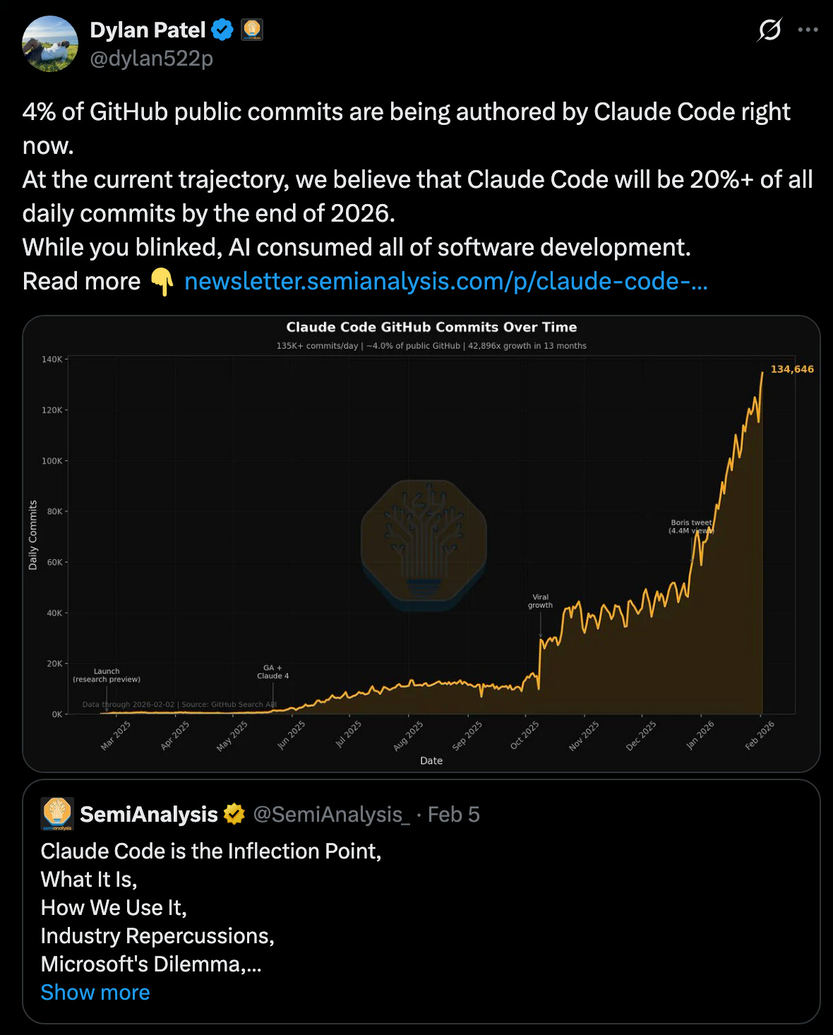 AI escape velocity: why Claude Code adoption jumping from 2% → 4% of GitHub commits in a month matters, and why coding agents are the first real trillion-dollar unlock