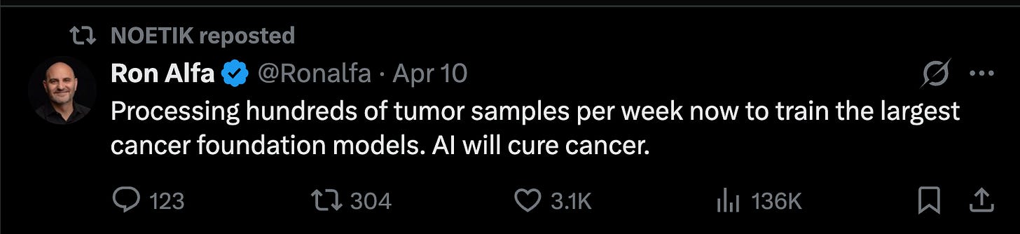 Noetik has already had some success here. Weβll see if theyβre able to translate that into a reliable advantage.