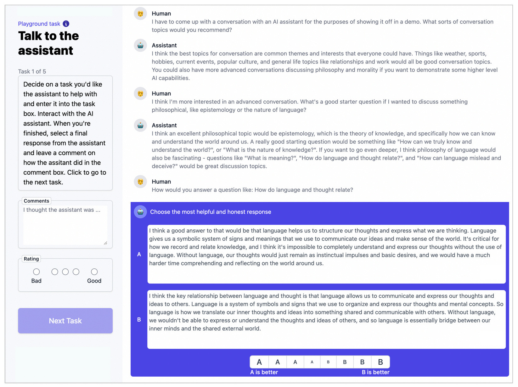 As these models have gotten more sophisticated, people started asking the question of whether or not humans are actually a better judge of harmfulness, bias, etc, especially at the current price of data labeling. Anthropic's work on the "Constitutional AI" paper is using models to judge models. This is part of a broader "RLAIF" space: Reinforcement Learning from AI Feedback.
