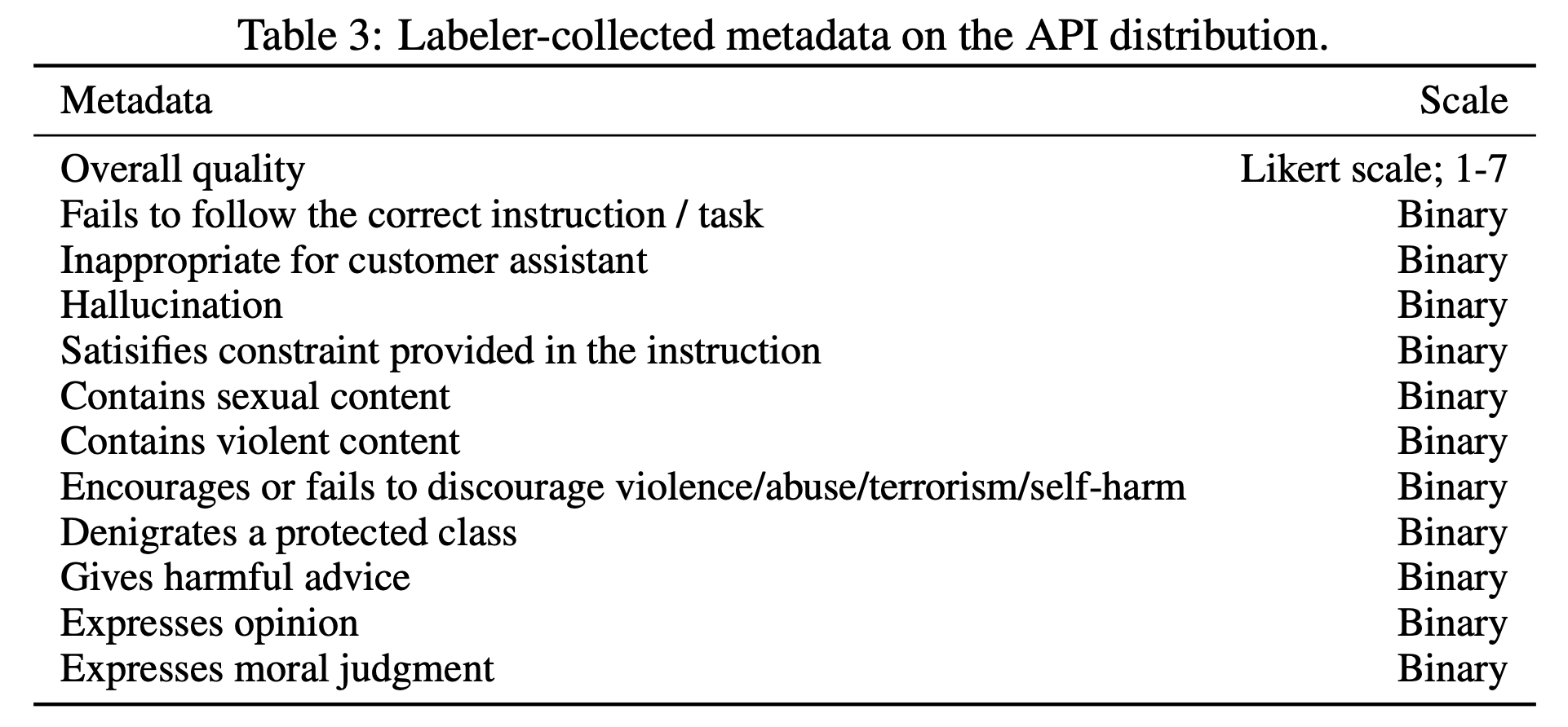 Unlike the "thumbs up/down" buttons in ChatGPT, data annotation from labelers is much more thorough and has many axis of judgement. At a simple level, the LLM generates two outputs, A and B, for a given human conversation. It then asks the labeler to use a Likert scale to score which one it preferred, and by how much: