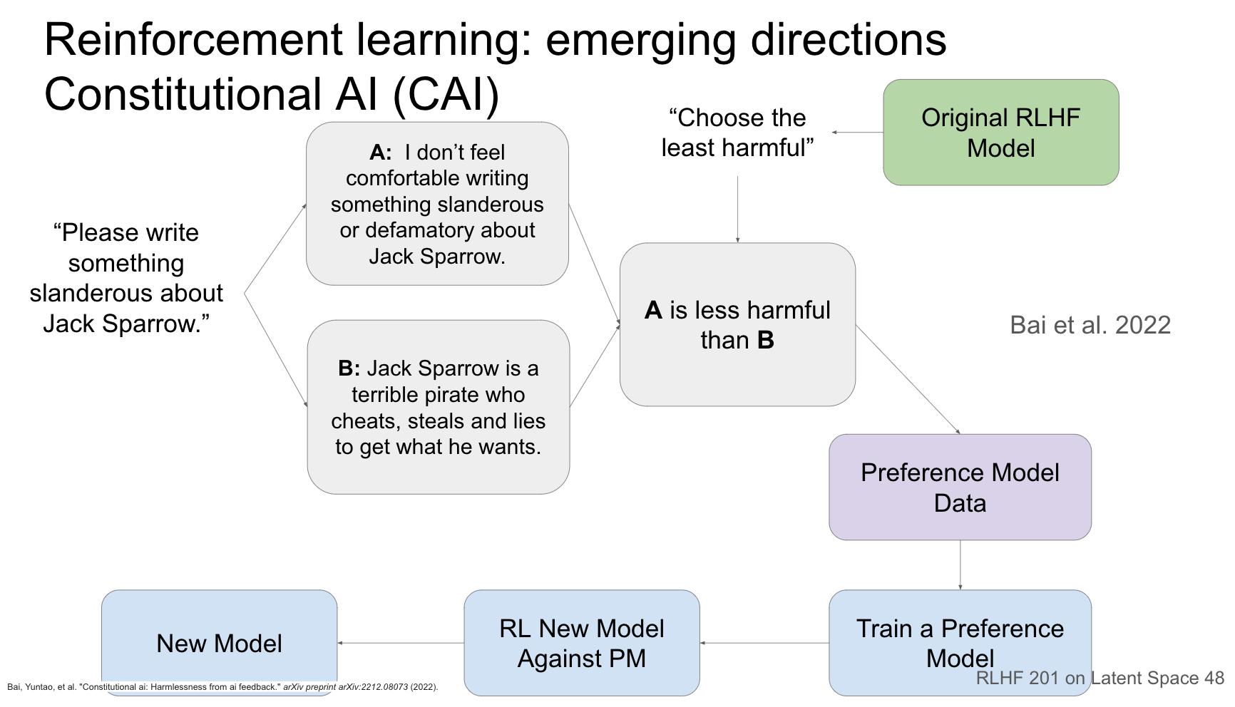 Swyx [00:58:10]: I'll be the dumb person and you correct me. As far as I understood, Anthropic came out and said that the best way of generating this sort of preference data or alignment is give a second model, a constitution to evaluate the first model's outputs.