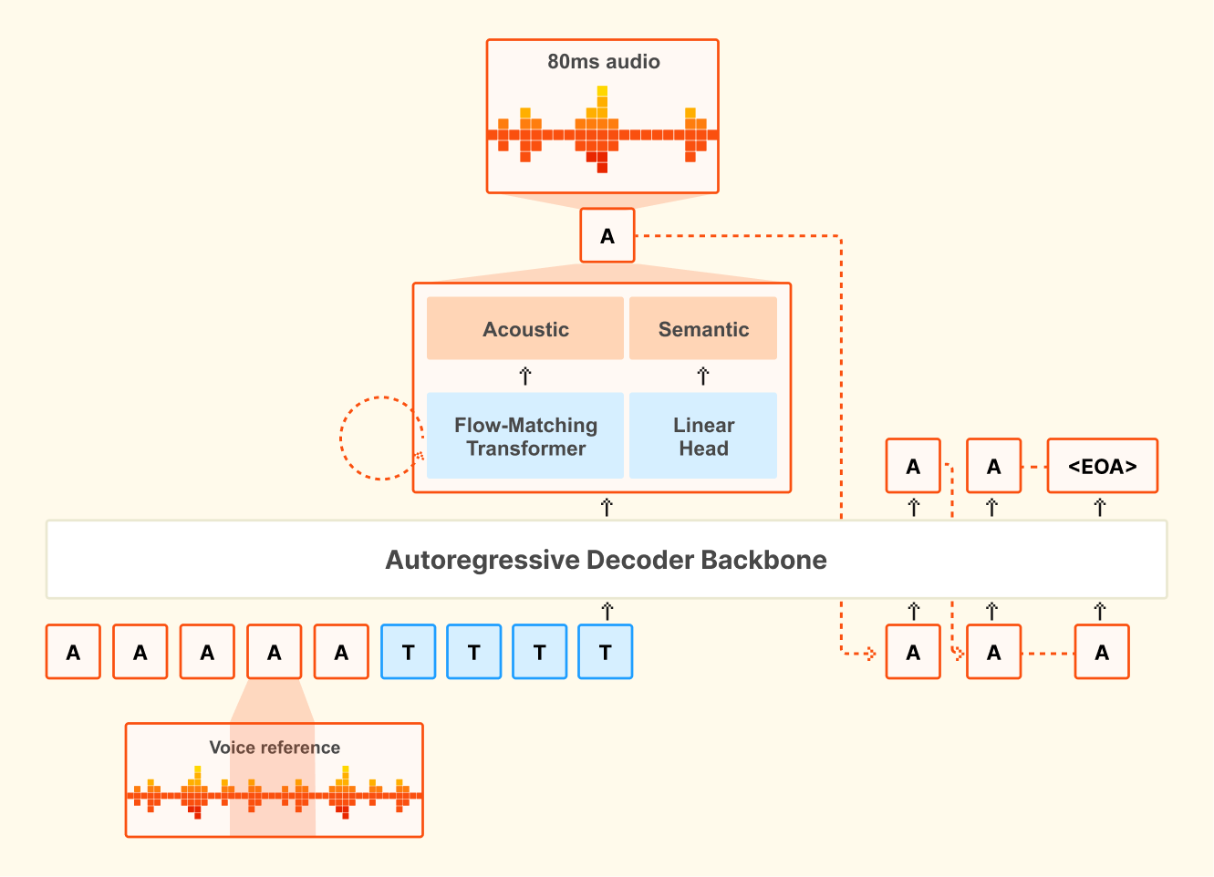 We traded on several internal architectures and ended up with a auto aggressive flow matching architecture. And also have a new in-house neural audio codec. Which, converts this audio into all point by herds latent [00:02:00] tokens, semantic and acoustic tokens. And yeah, that’s that’s their new part about this model and we’re pretty excited that it’s, it came out with such good quality and Jim was mentioning. Yeah, it’s a three B model. It’s based off of the TAL model that we actually released just a few months back and insert trunk and mainly meant for like the TTS stuff, but they need text capabilities are also there. Yeah.